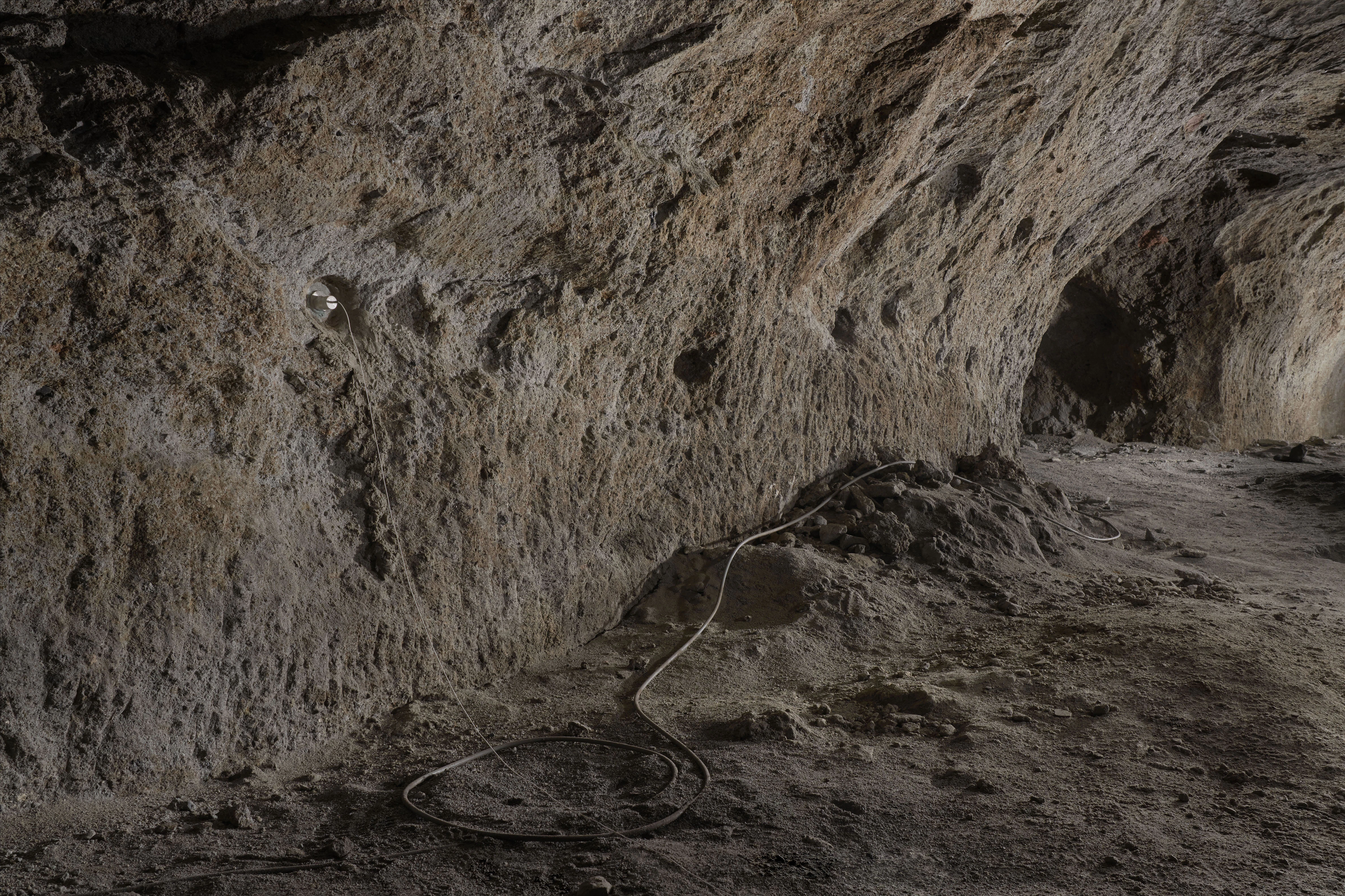 写っているのは私たちの足元、その地下空間に設置された地震の研究装置。京都大学地震予知研究センターが管理しているもので、戦時中に旧日本軍が作った地下壕を転用し、現在は地震の予知研究に役立てられている。普段は真っ暗闇の地下空間にライトを持ち込み、光源の位置を何度も変えながら複数枚撮影。そしてそれらを重ね合わせて、1枚の画像に合成した。可視化された風景は現実には存在せず、この写真にのみ映し出される。