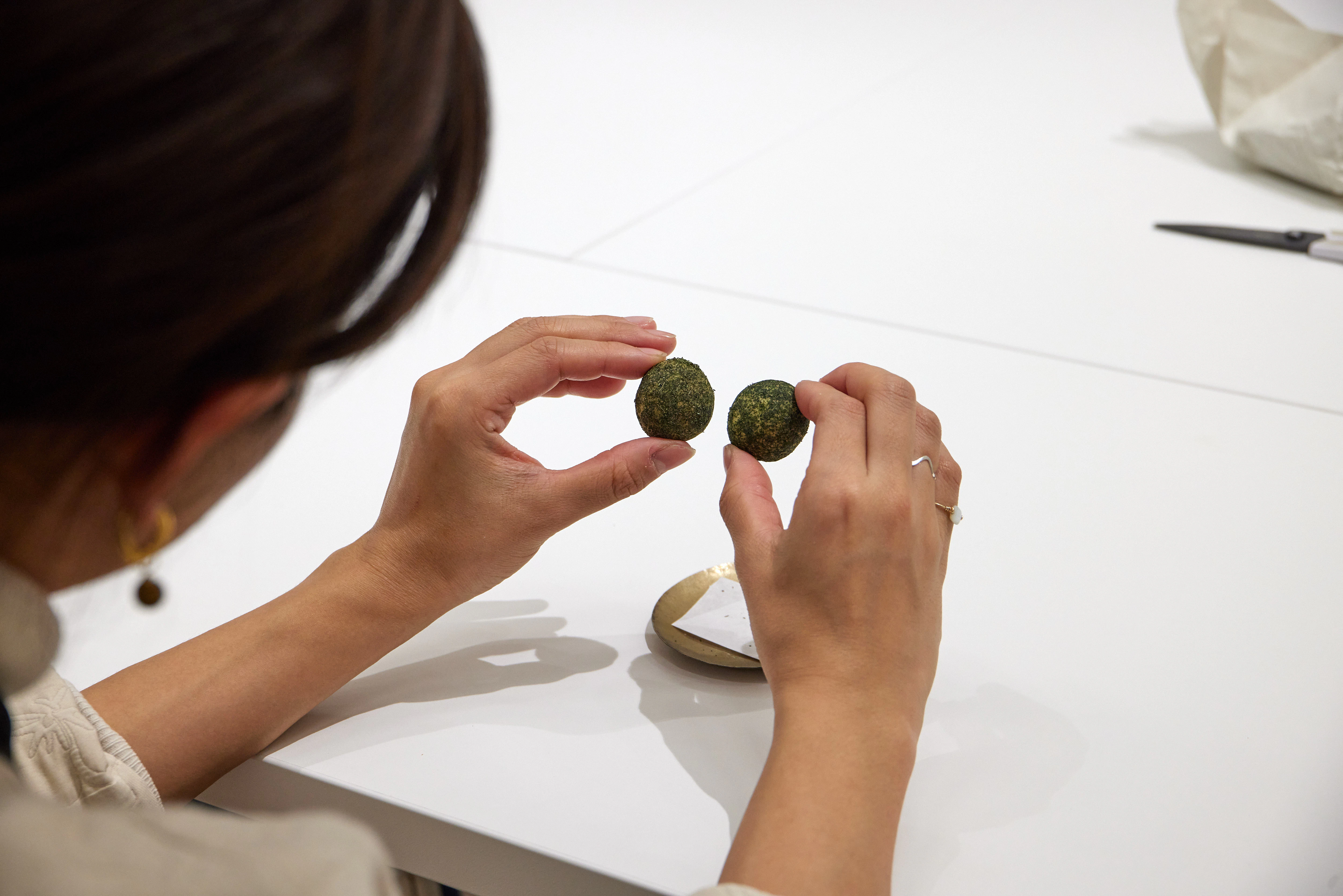 「garden -a- <この風景の要素>」の作品の中にも、マスタードやドクダミ茶など、大都市の片隅でたくましく生えている植物に、食材として関心を寄せたものがあります。作品の素材や調理ともリンクさせながら、美味しく楽しく食べることを重視し、今回は原澤さんにプロデュース、調理いただいております。