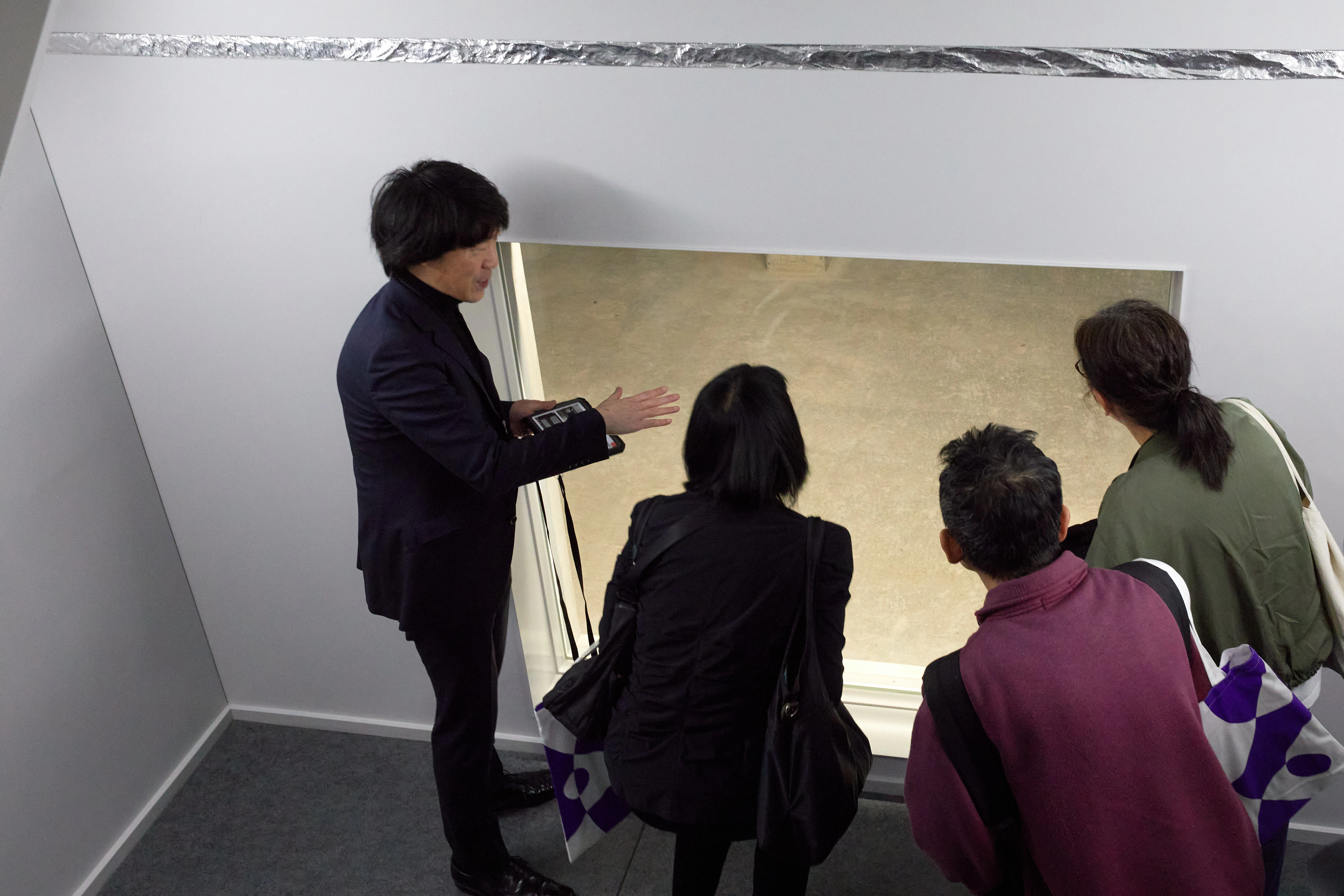 毛利悠子の作品「分割された 地震動軌跡模型I」でも表現されている予知しがたい地震の動きに対し、現代建築はどう対処できるのか。地震に強いTODA BUILDINGのコアウォール構造を支える、普段は目にすることない免震層について、複数の装置によりあらゆる地震動に対応する技術とともに紹介します。